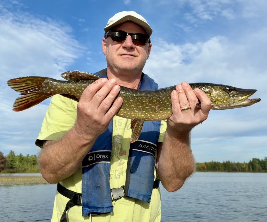 October 2022 – Some of the Musky being stocked in Middle Gresham LakeStocking Walleye and Musky in Middle Gresham – Oct 2022 and Musky’s in Nov 2025Rainbow over Middle Gresham Lake – June 2023 – Photo taken by Jeff and Terry GreenGuest Jeff Green’s Large Mouth Bass – 2025Guest Terry Green’s Northern Pike – 2025Granddaughter Charlotte Hise’s catch – 2025Guest Sara Hans – 2025Guest Bill Hans Northern Pike – 2025Middle Gresham Resident Loon mama and baby – 2025Uninvited north woods guest – July 2025 – The reason you do not leave food unattended outsideGrandson Knox and his catch – 2025Guest Sara Hans Large Mouth Bass – 2025